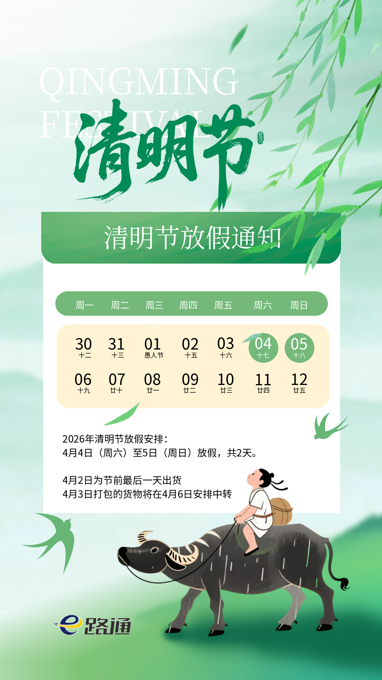 | 2026年清明节放假通知